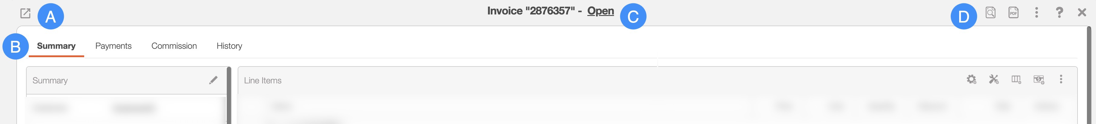 The "Summary" tab is the default tab you will be directed to; it will display all the requisite information regarding an invoice.