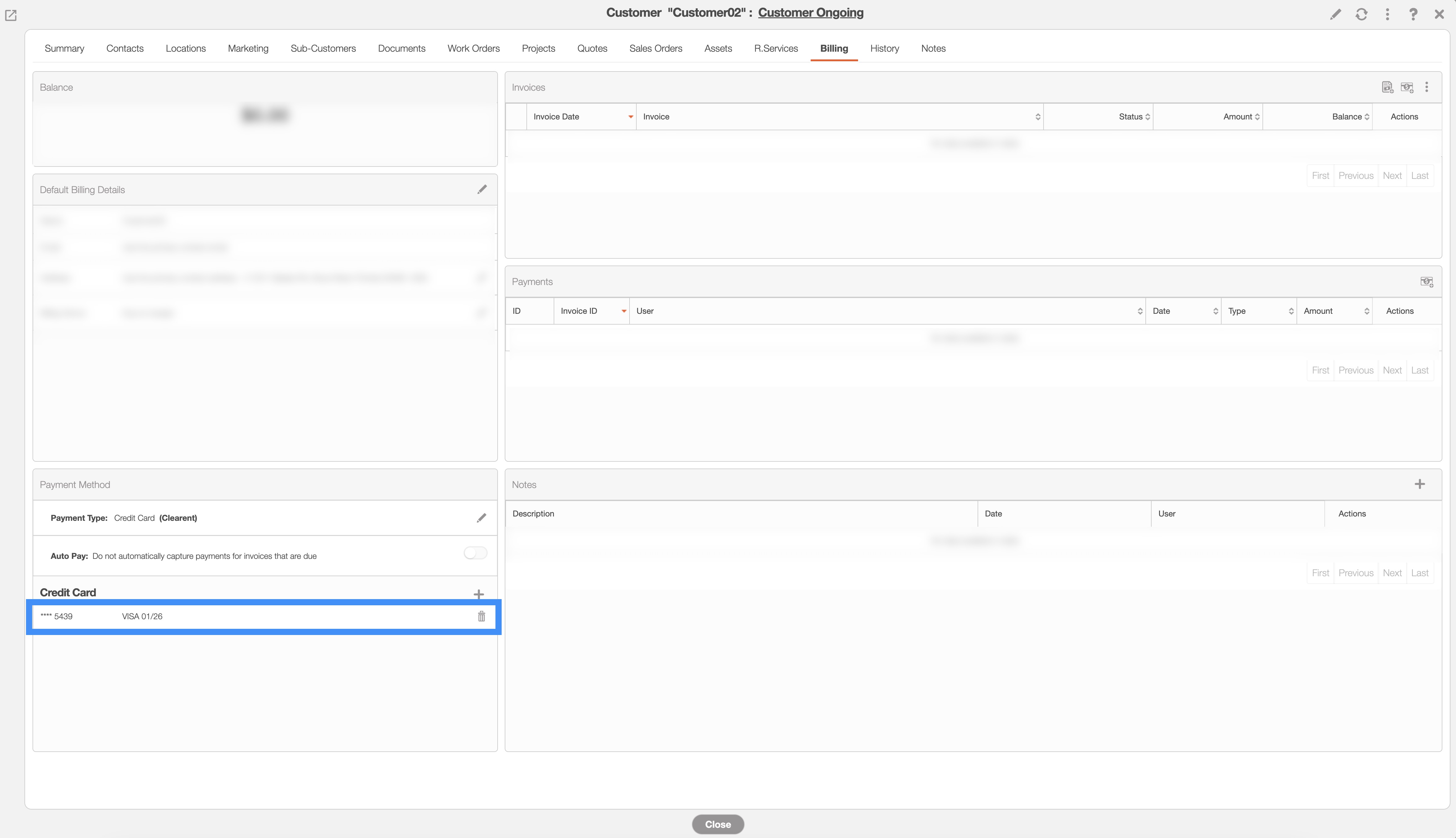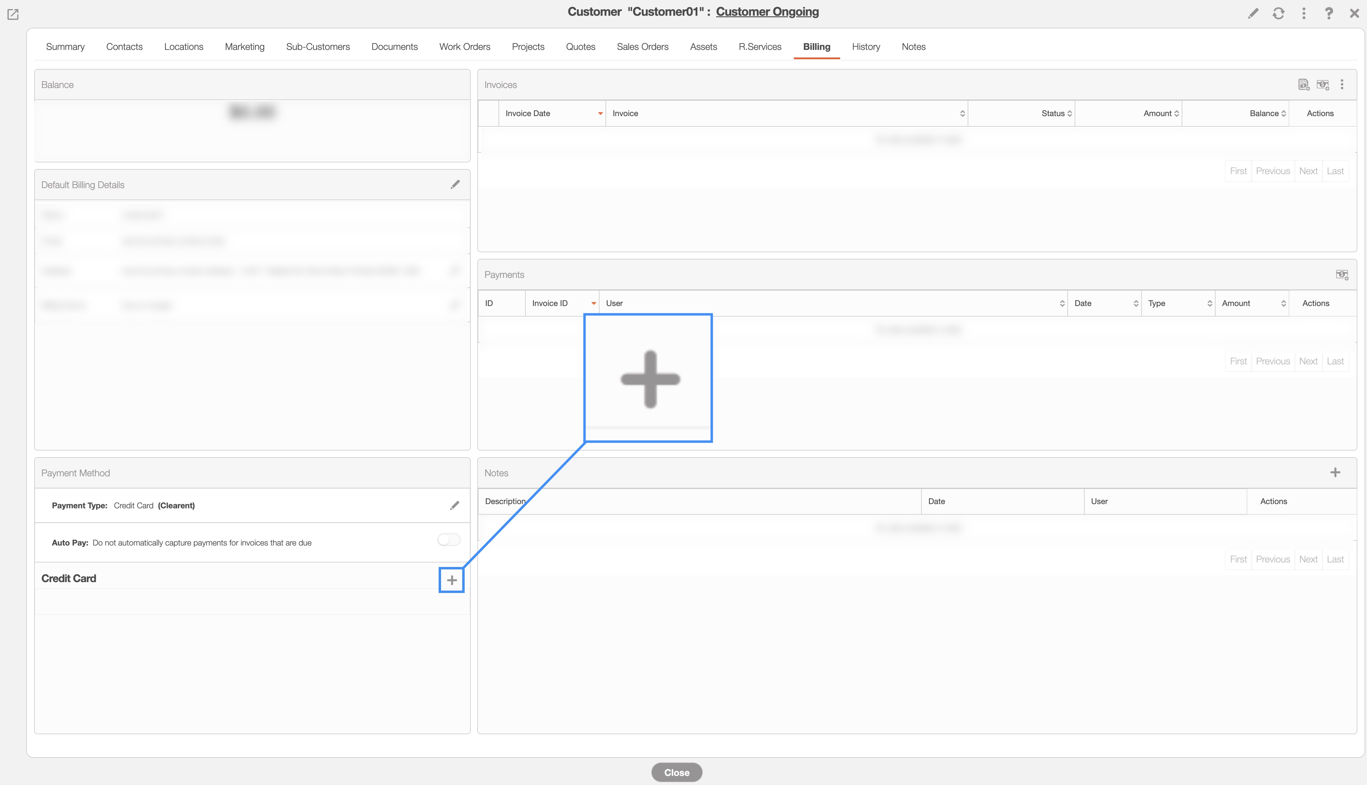 Note: The ability to store a customer's credit card data for future use, is only available to Global Admin users, or Users with permission to edit the customer's billing information. If you do not see the option to add a card to a customer account, please contact your company's Admin(s).