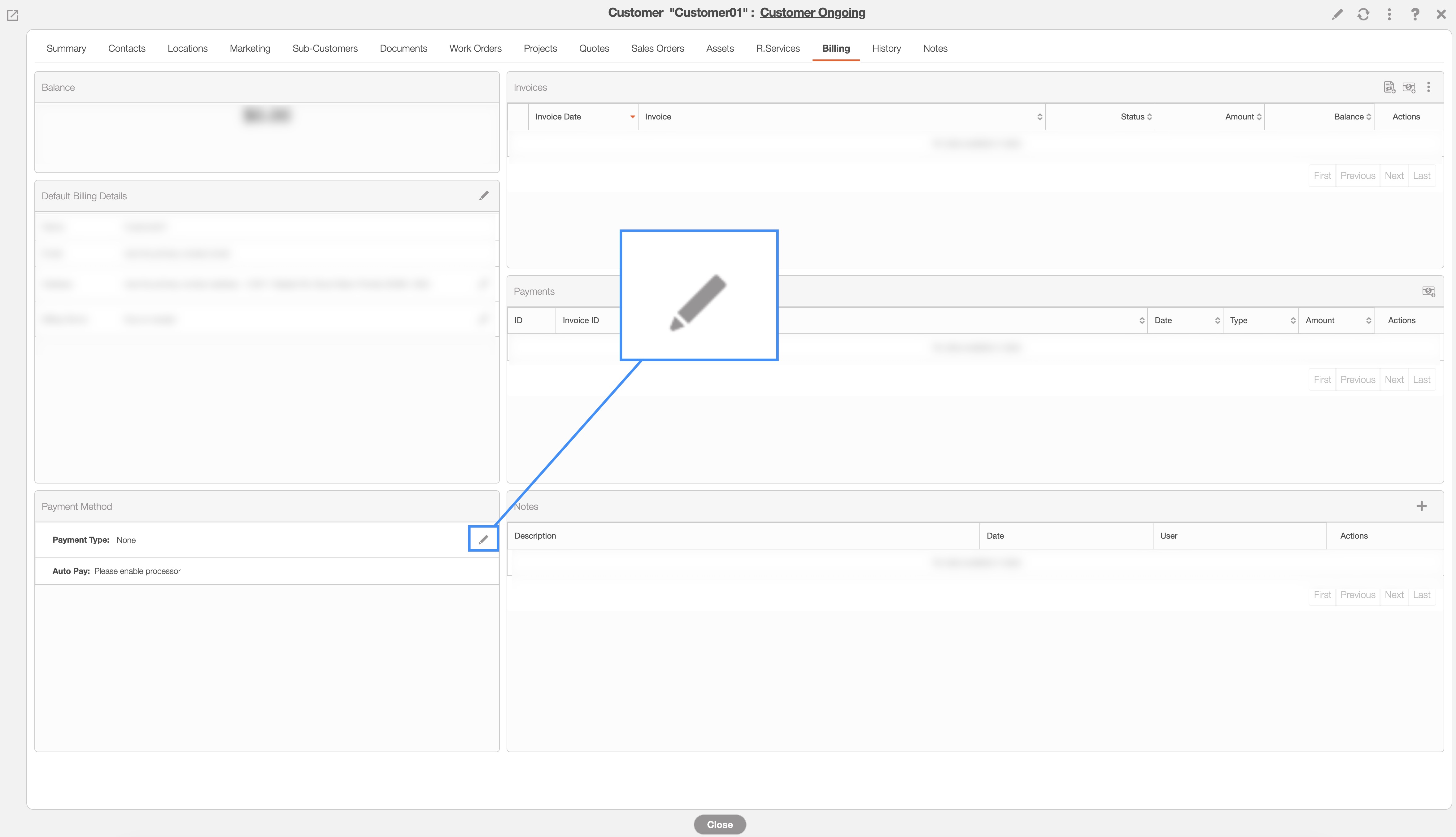Under the "Payment Method" panel, click on the Pencil icon: