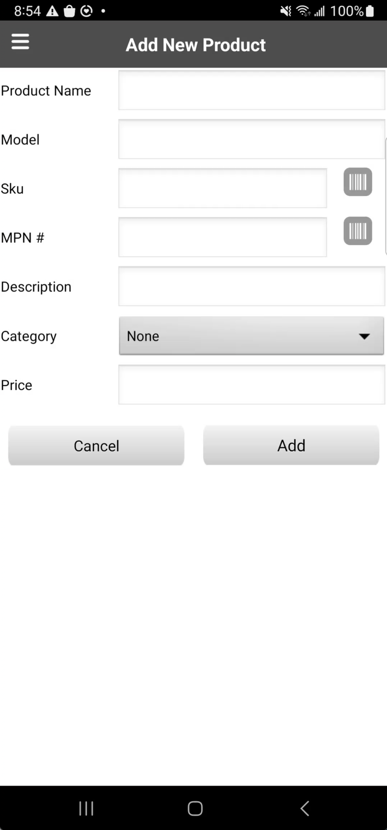 Once the required fields are completed, select the Add button to confirm the new product details. The newly added part will then sync to the web platform, thus enforcing uniformity throughout your company and granting access and visibility to your office staff.