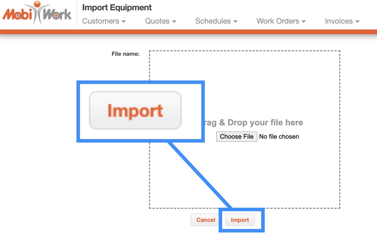 Once you have entered the assets in the Excel document correctly, you can upload that document to MobiWork:
