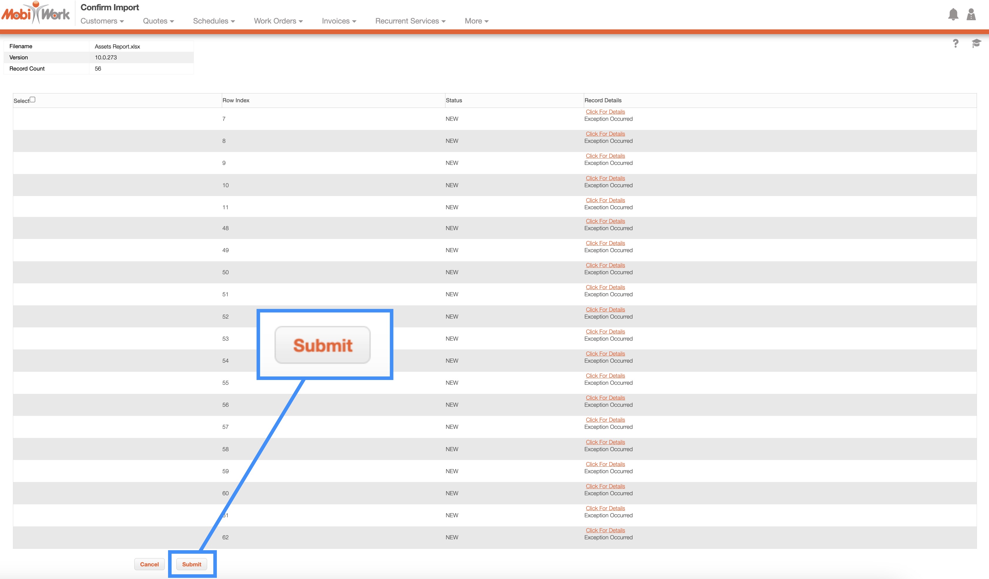 You will then be redirected to the Confirm Import page. Confirm your imported Excel file by hitting the Submit button: