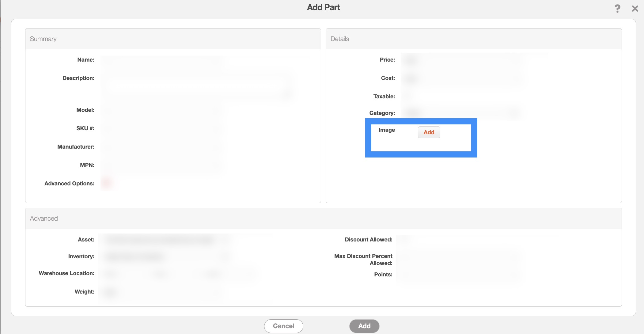 Adding a new part or product to your business catalog has never been easier. With MobiWork not only will you be able to create new products, but you will also be able to include images, indicate if the part can be converted to an asset, and more. This section will highlight how to access the Add Part pop-up window. how to add an image to multiple parts, or to an individual part.