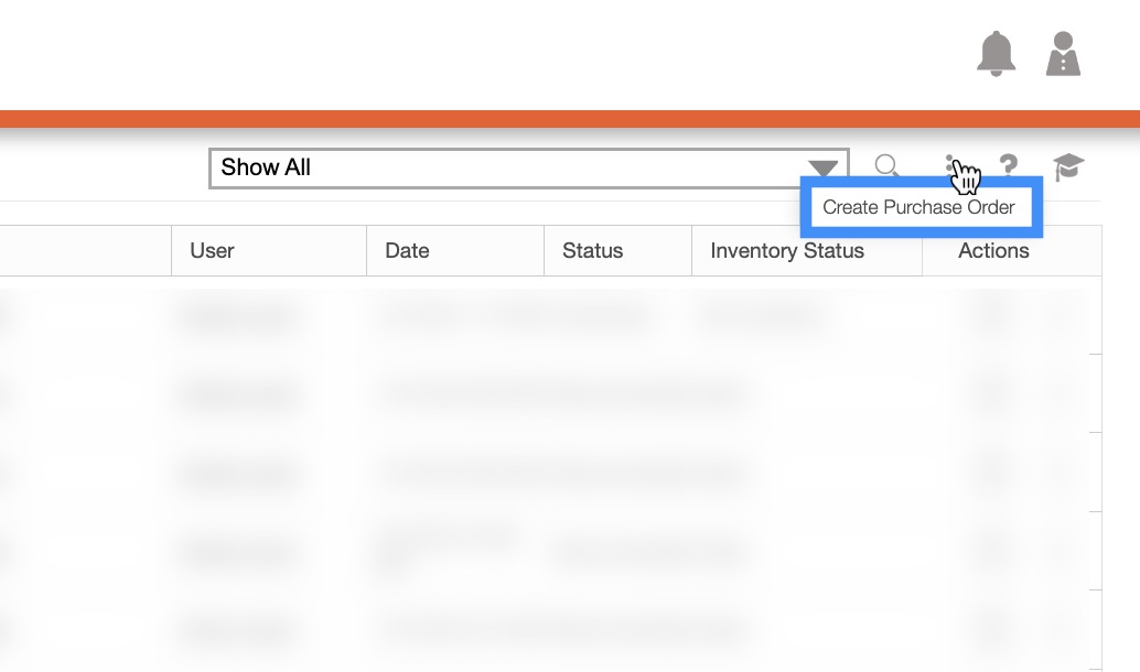The More Actions button (represented by the three vertical dots) which will allow you to create a purchase order for the selected work order parts.