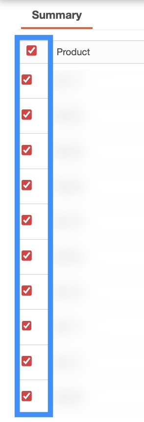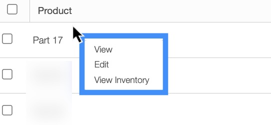 The checkboxes (multiple selection area) found to the left of the "Product" column, will allow you to select either one or multiple work order parts to view, edit, and view inventory: