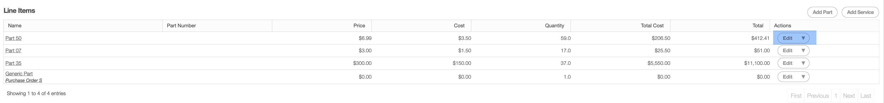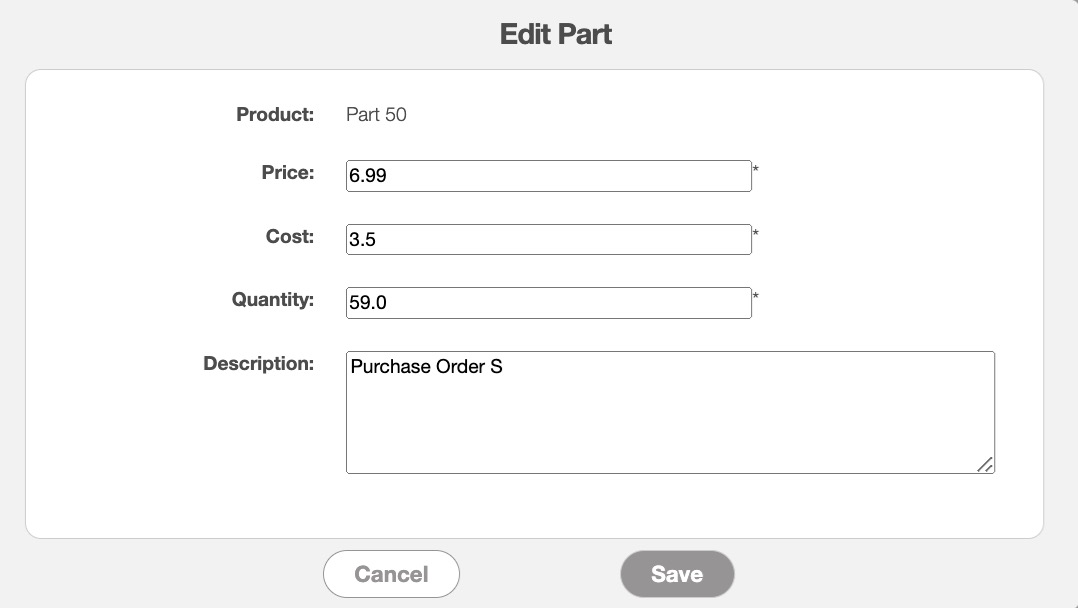To edit parts in a purchase order, you will first need to access the View Purchase Order pop-up window.
