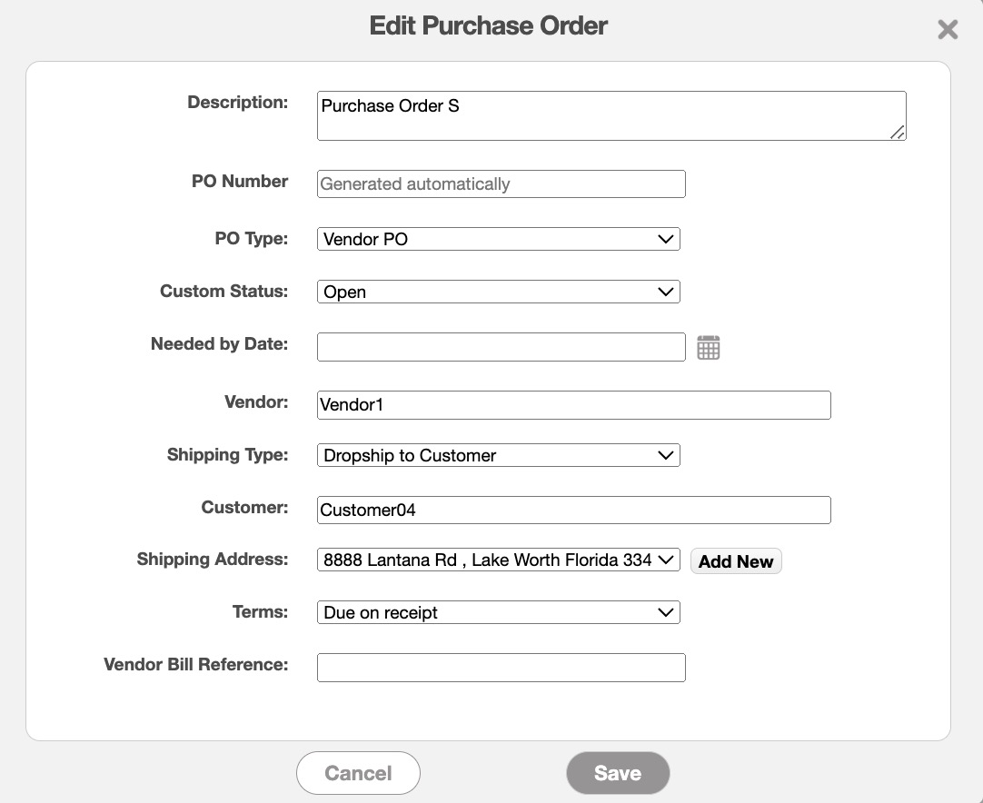 Regardless of how you choose to edit an individual purchase order, the Edit Purchase Order pop-up window will then appear: