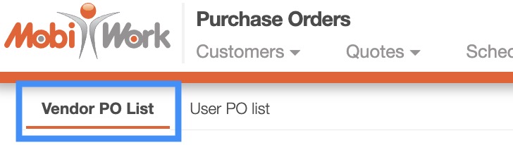 The "Vendor PO List" tab is the default tab you will be brought to once you access the Purchase Orders feature; from this page you can navigate to other tabs and see all your purchase order data summarized on one page.