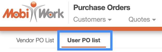 The purchase orders in this tab display those issued to users; you can indicate if the purchase order is meant for a user when adding a new purchase order and selecting the "User PO" type in the "PO Type" field.