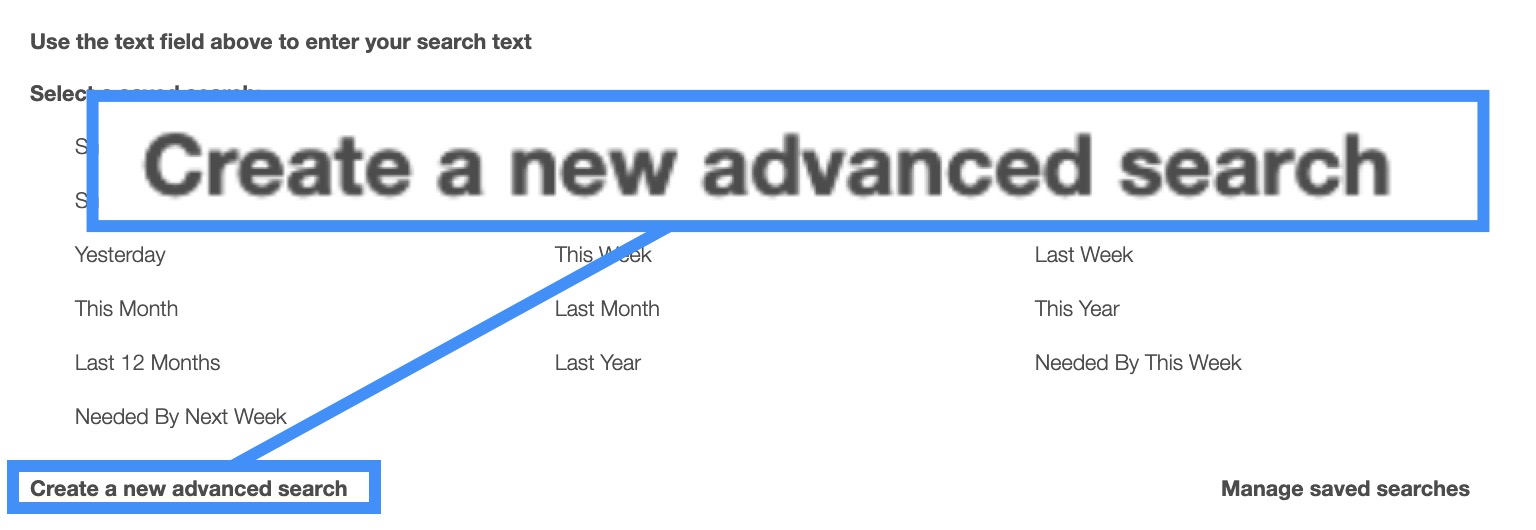 To create a new saved search, select the "Create a New Advanced Search" option from the drop-down menu:
