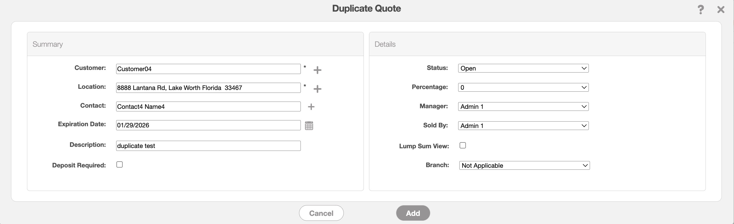 When duplicating a quote, key information like the customer, line items, terms and conditions, and if a deposit is required will be transferred to the new quote. Notes will not be transferred to the newly duplicated quote.