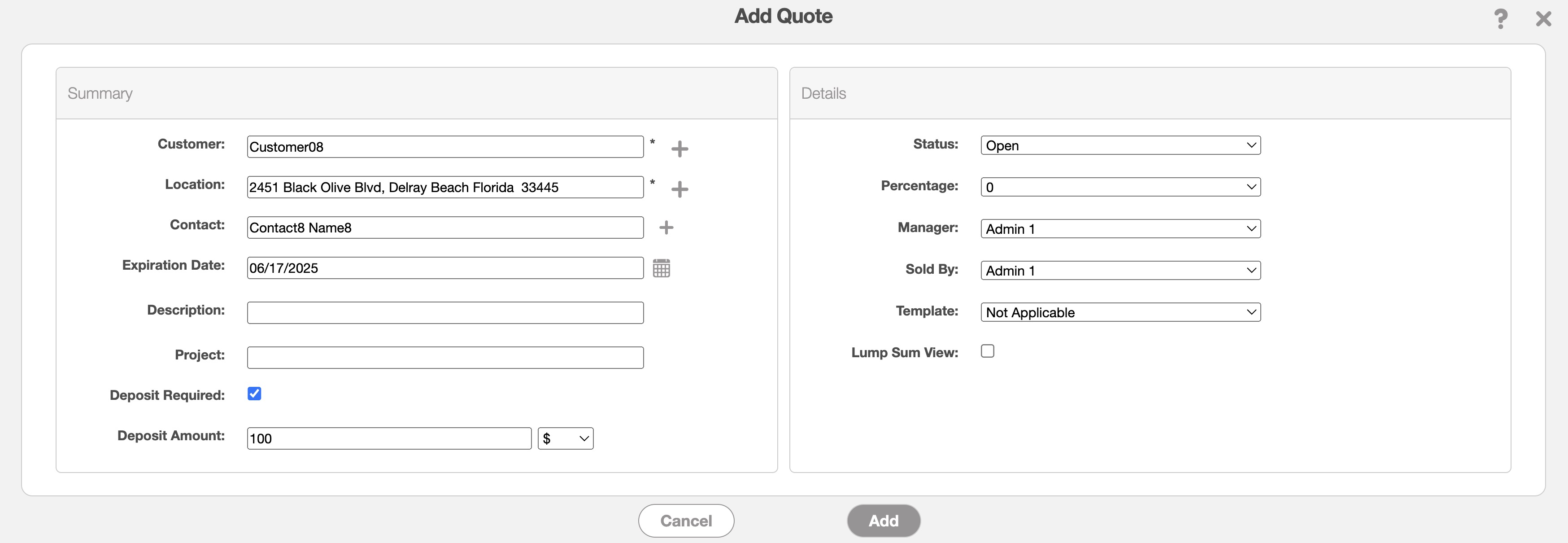 | "Deposit Required" | The amount of money for the quote, that is required to be prepaid before a service, appointment, or action can be done. Once selected, you will be able to input the deposit amount. |
