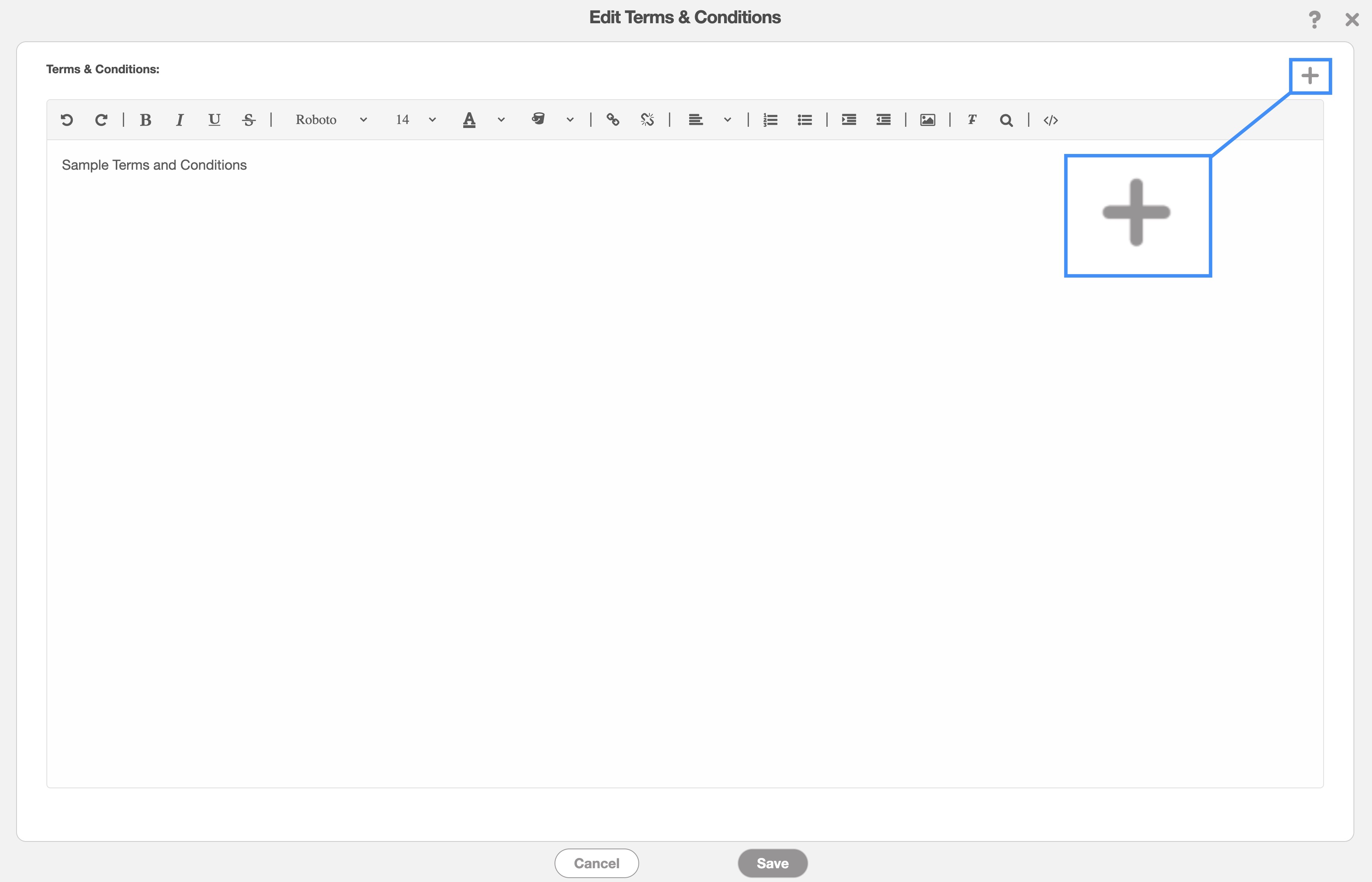 Once you click on the Add Terms & Conditions button, the Add Terms & Conditions pop-up window will appear: