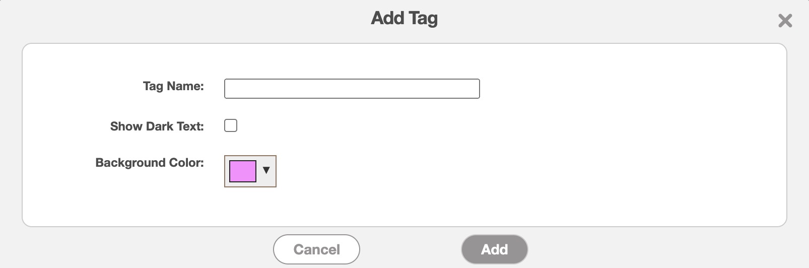 Once you click on the Plus Sign icon, the Add Tag pop-up window will then appear:
