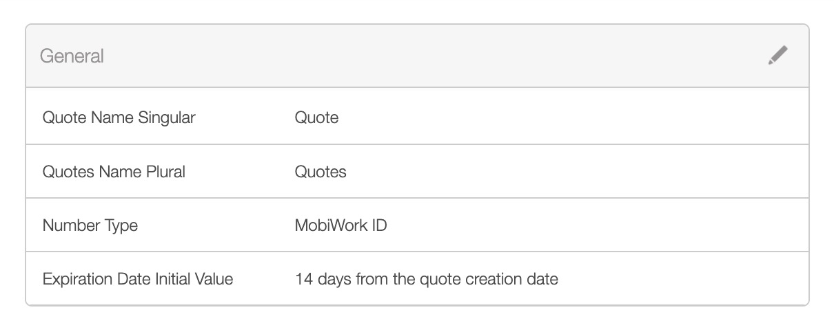 To modify this information, simply click on the Pencil icon located in the top right corner. This action will trigger the Edit Quote Settings pop-up window to appear: