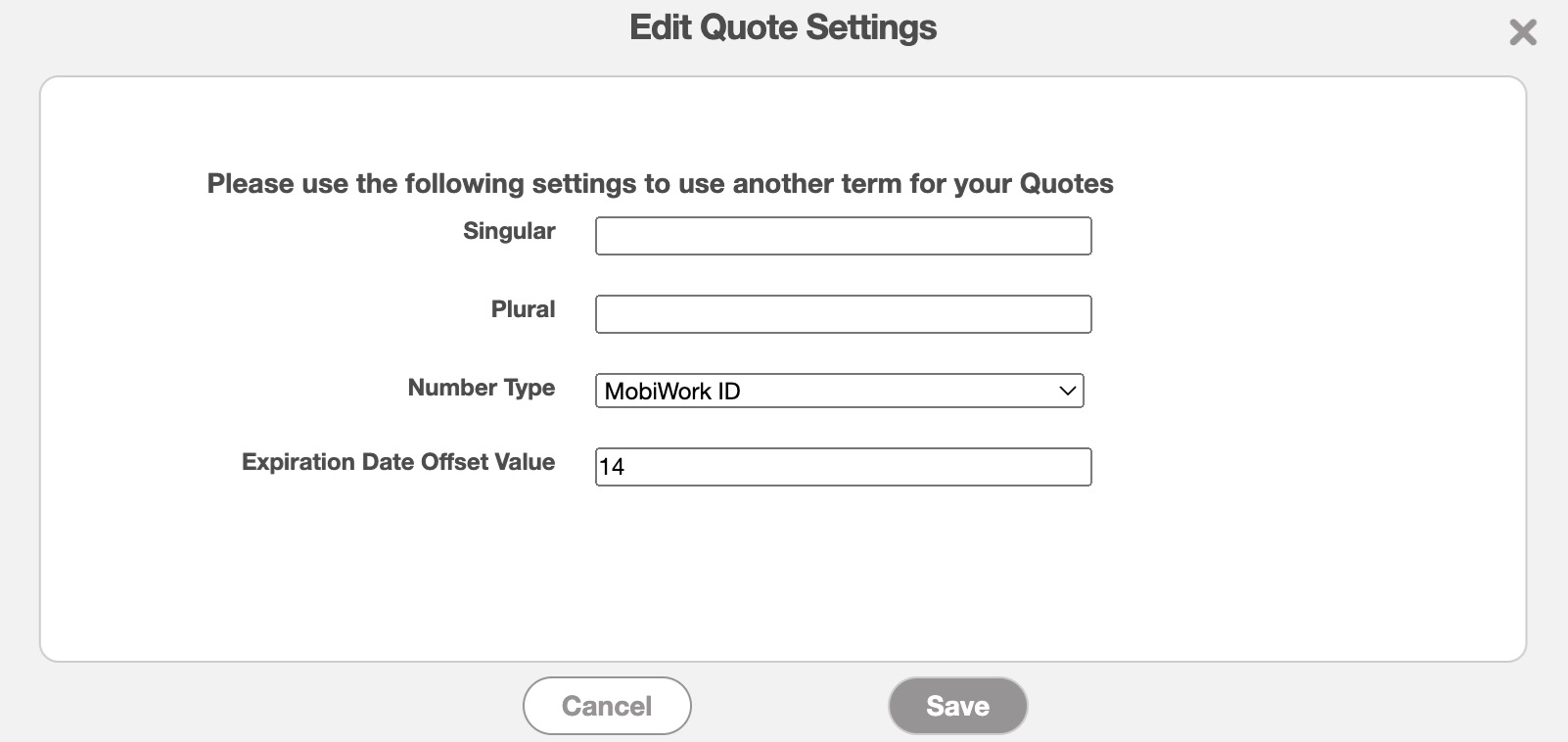 Indicate what number system you would like to use to manage your quotes (MobiWork ID is selected by default).