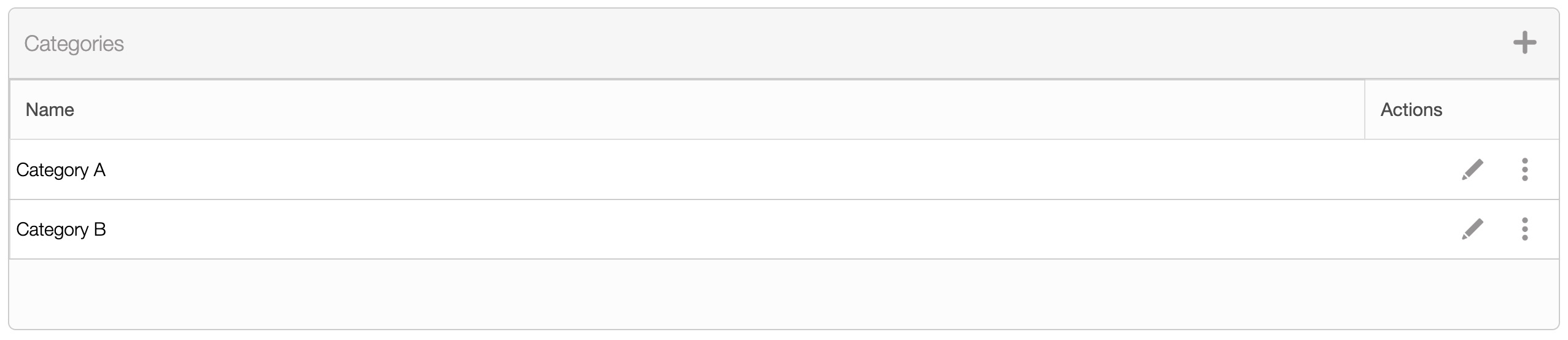 When you first access this section there will be no categories listed. To add a new category, click on the Plus Sign button: