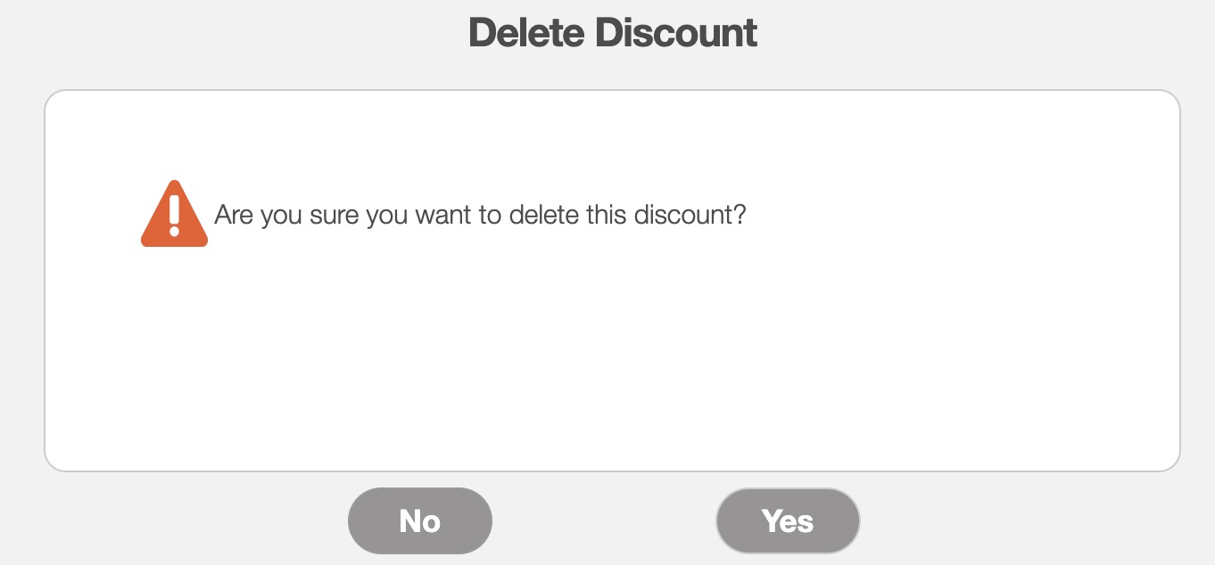 Once you click on the Trash Can button, the Delete Discount pop-up window will appear: