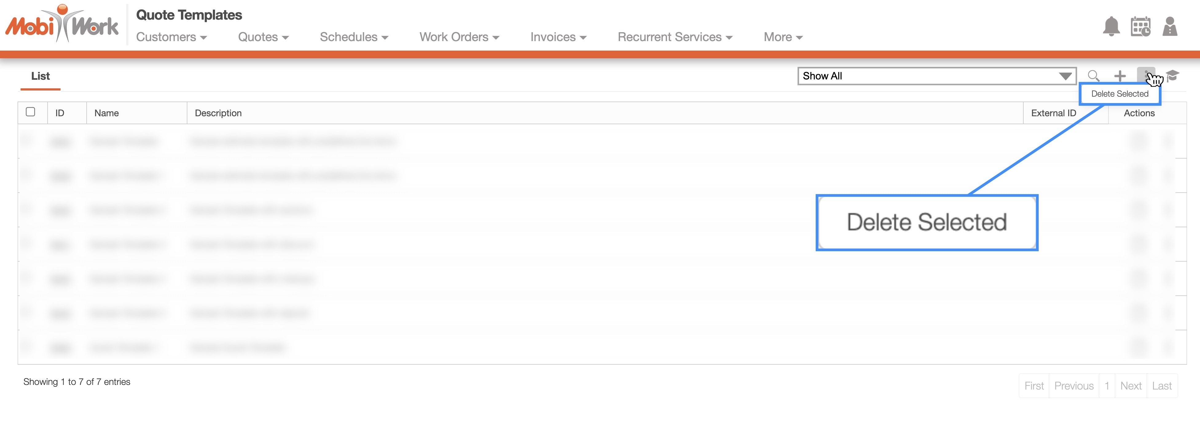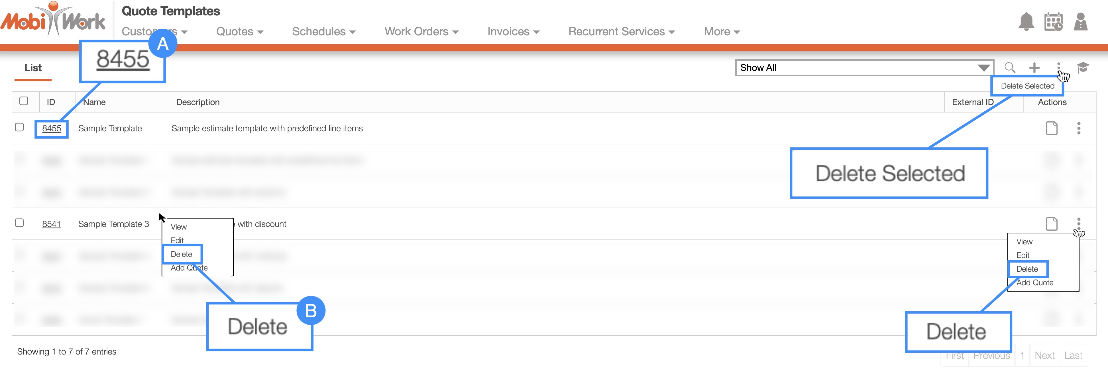 To permanently remove a quote template, you must first be on the Quote Templates page. Once you are on this page you can edit a quote template in the following ways: