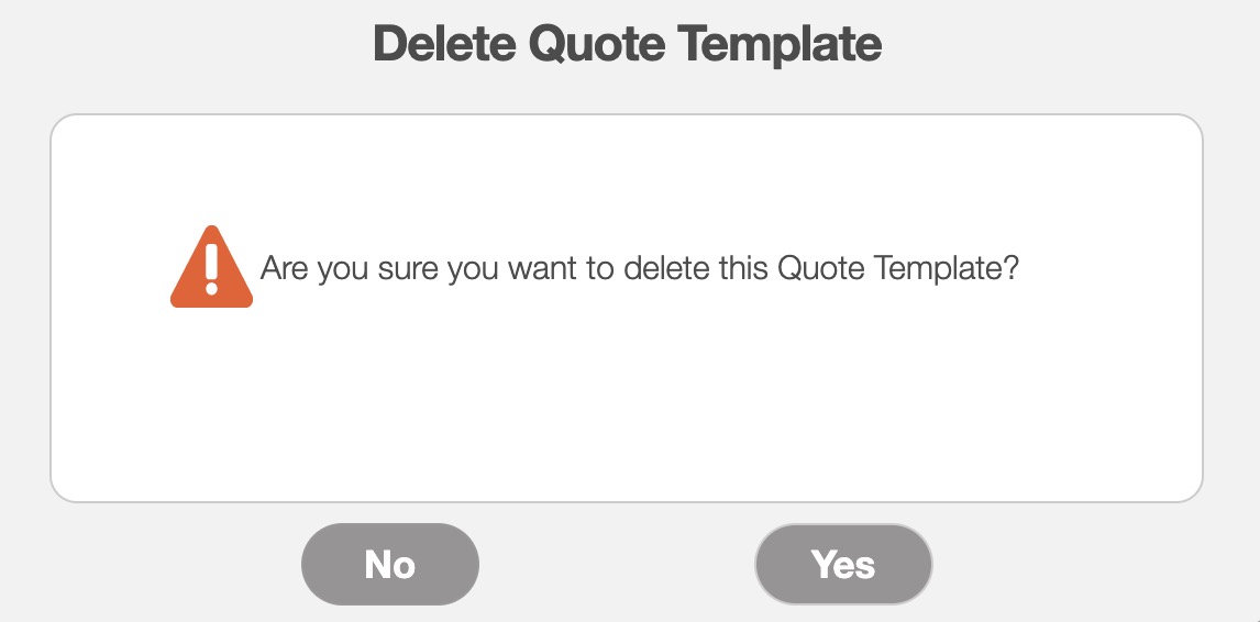 If you are sure you would like to remove the selected quote templates, click the Yes button.