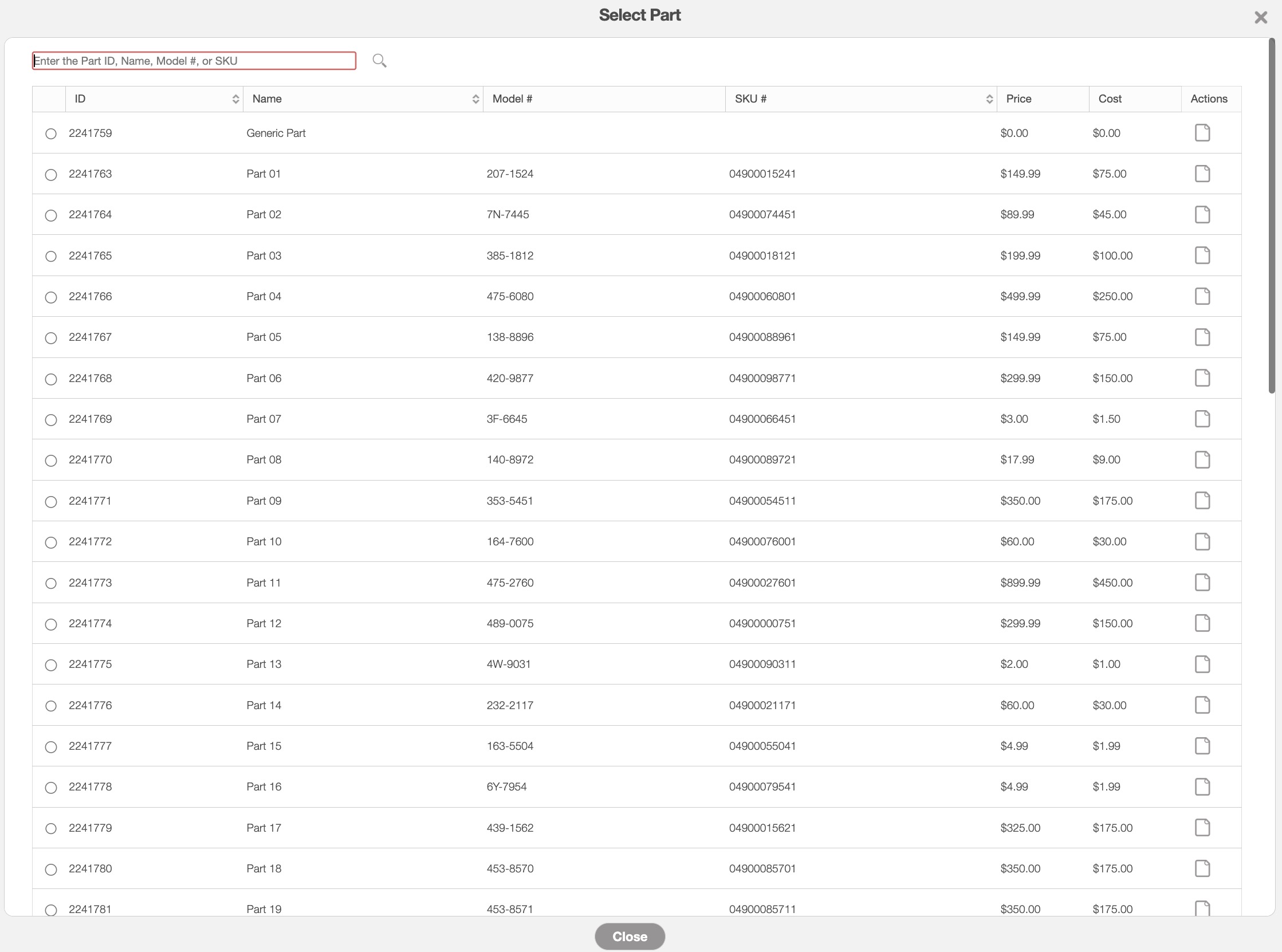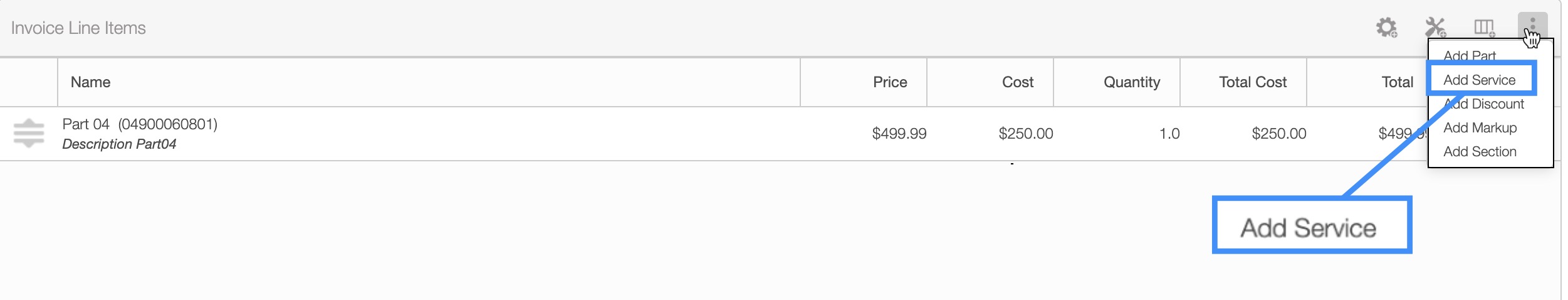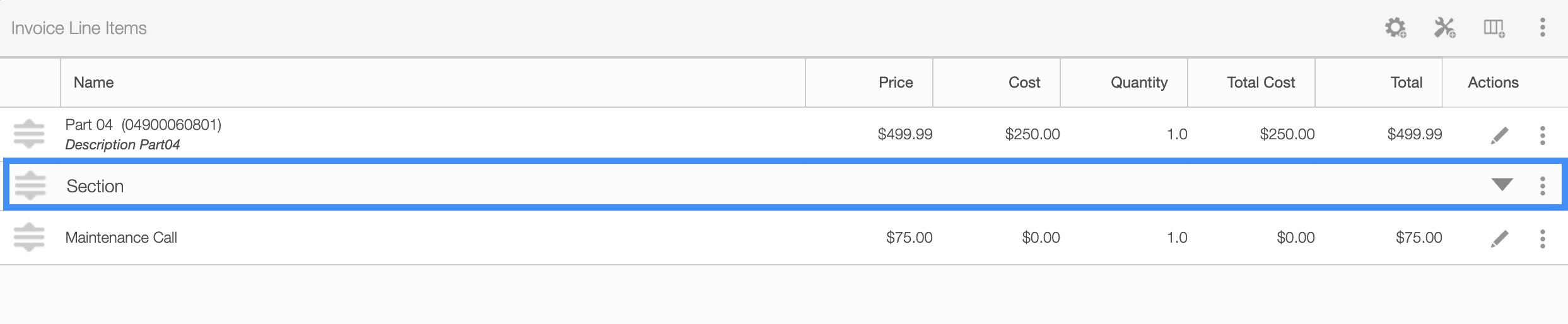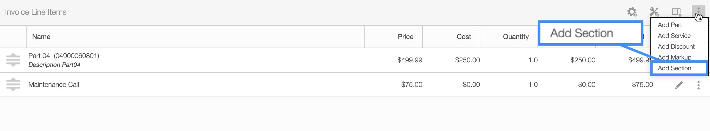 Section- You can also directly add the part to a specific section for better organization of the invoice line items.