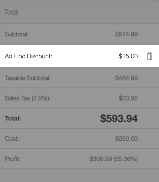 If you decide to no longer apply the discount, you can select the Trash Can icon next to the discounted amount.