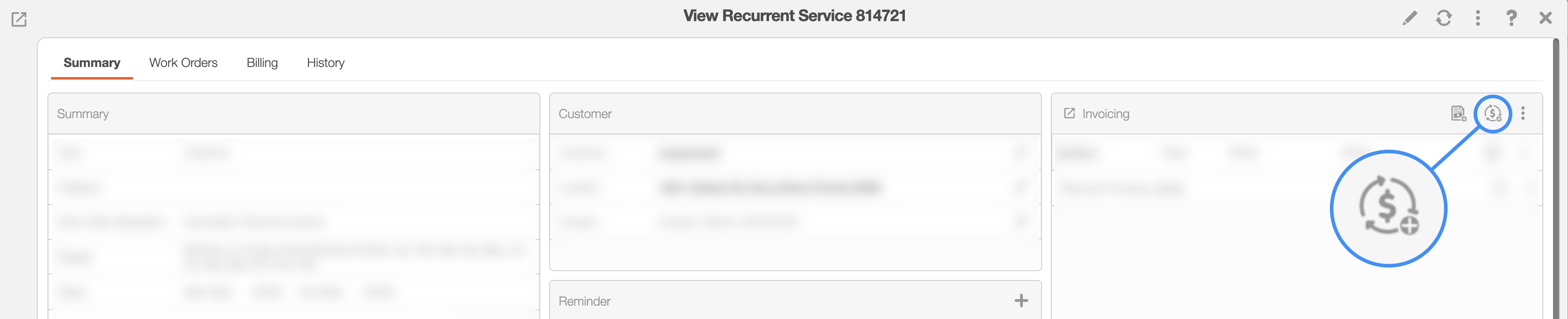 You can also create a recurrent invoice from the View Recurrent Service pop-up window's "Invoicing" panel.