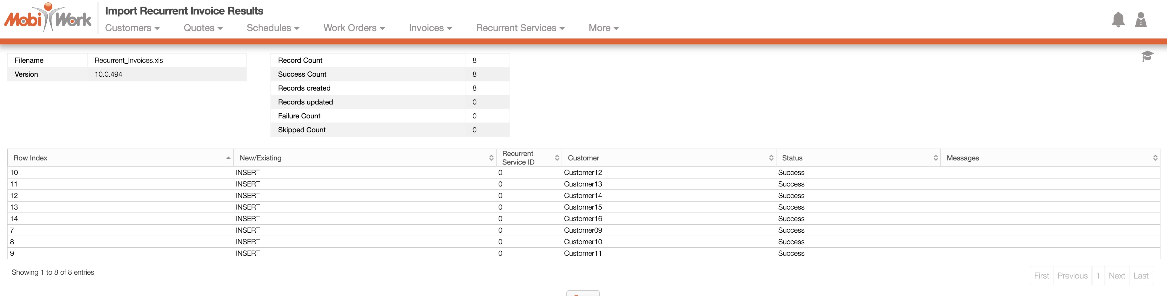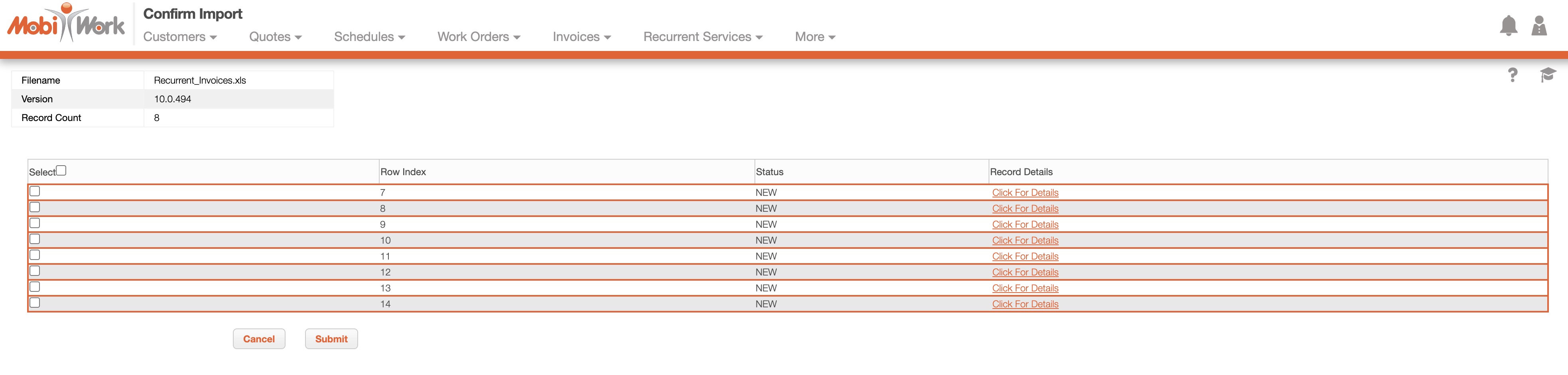 For more information on how to import multiple recurrent invoices, please see the Import Recurrent Invoices section.