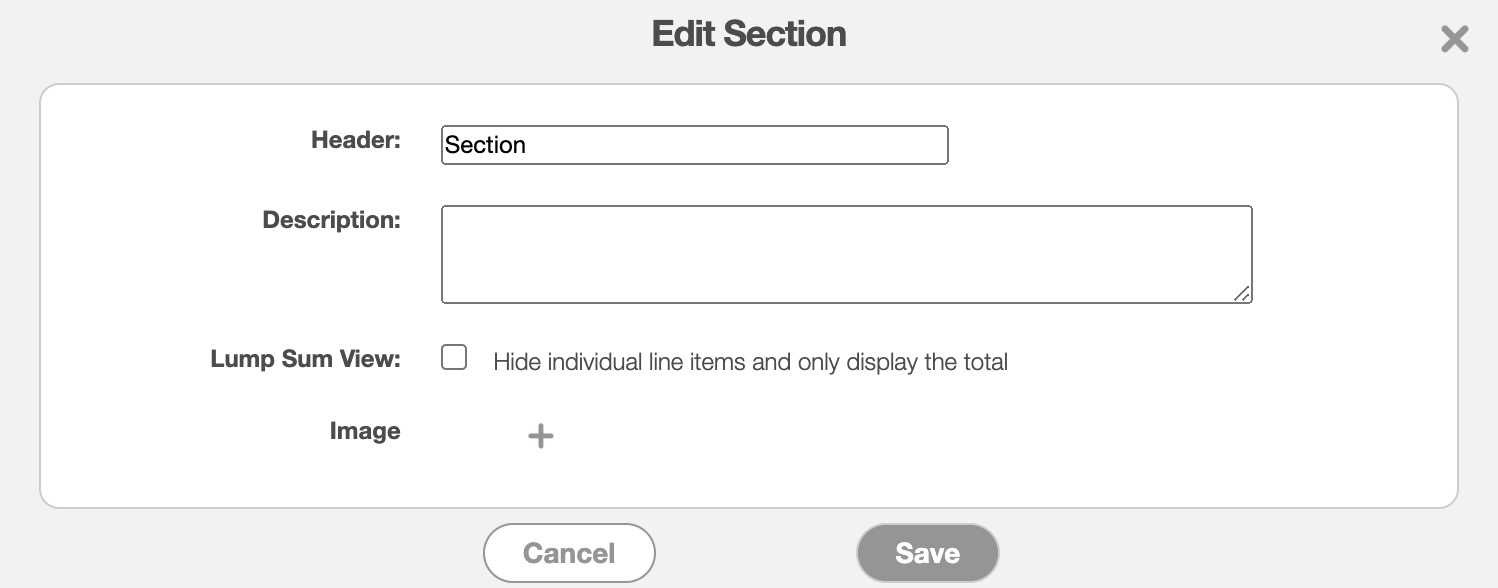 Lump Sum View- You can choose to uncheck or check the "Lump Sum View" option. By clicking on the lump sum view for the Edit Section pop-up window, you will be able to hide the individual line items for the items listed in the specified section. This option is different from the "Lump Sum View" checkbox in the Add Recurrent Invoice pop-up window and the Edit Recurrent Invoice pop-up window; this lump sum view will apply to the entire recurrent invoice.