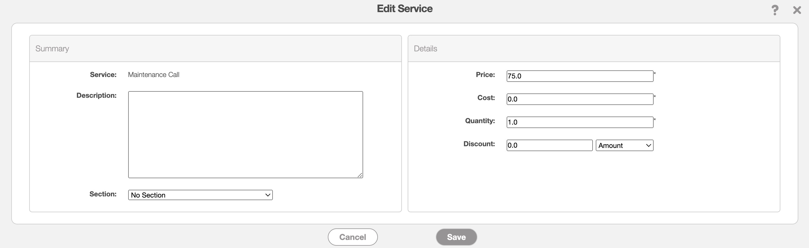 Price and Cost- These fields will be automatically filled based on the saved data you have in your services catalog; however, you can directly edit the price and cost. For more information about your services catalog, please see the Services Catalog (list) page.