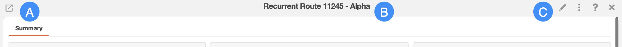 Once you open the View Recurrent Route pop-up window, you will be automatically directed to the "Summary" tab: