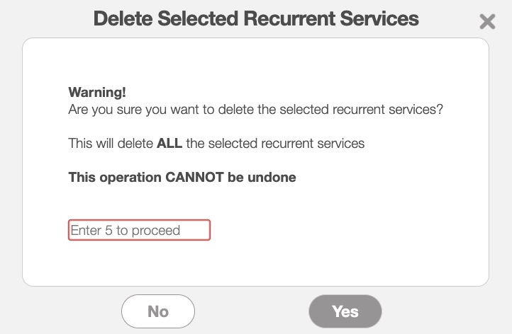 To confirm the deletion of the recurrent service, click the Yes button.