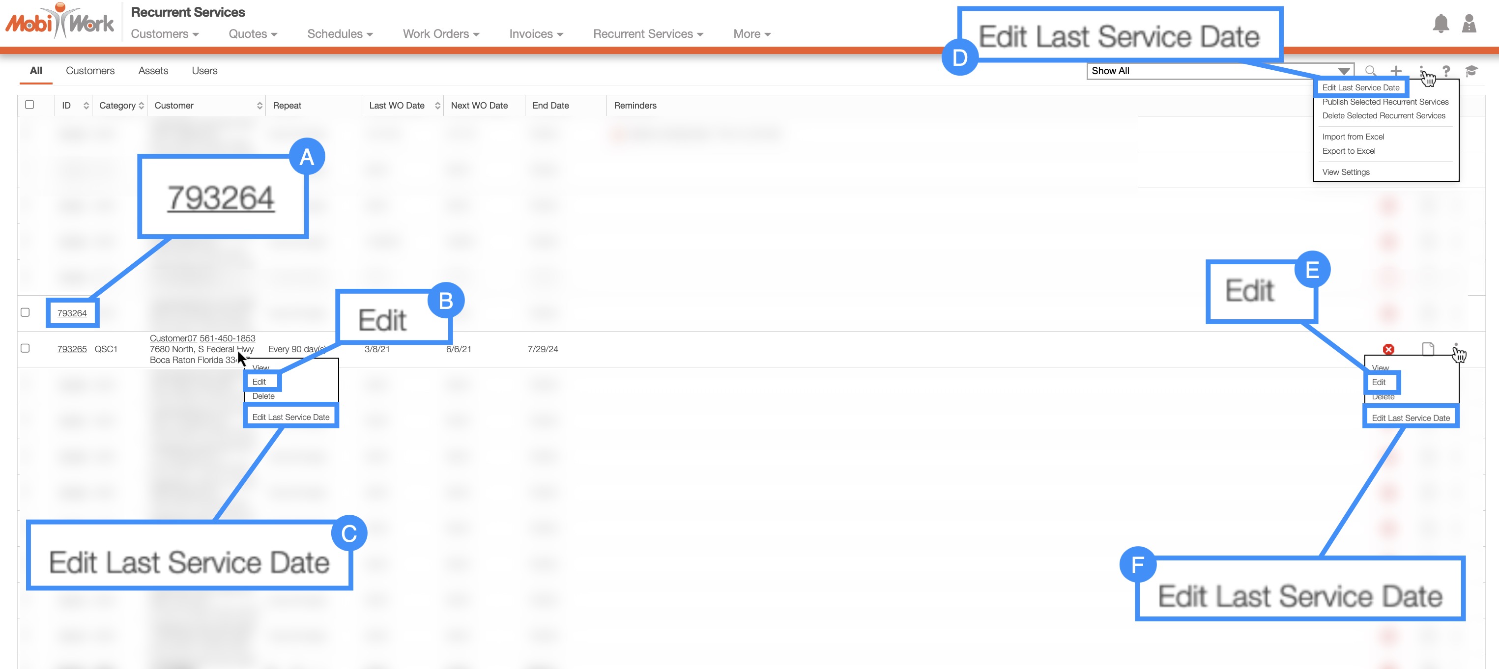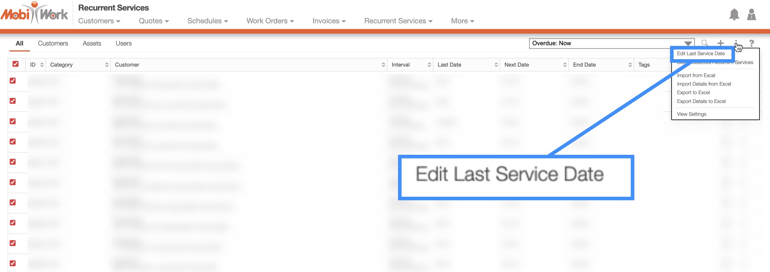 Once you are on this page, there are four different ways you can edit the recurrent service or its last service date: