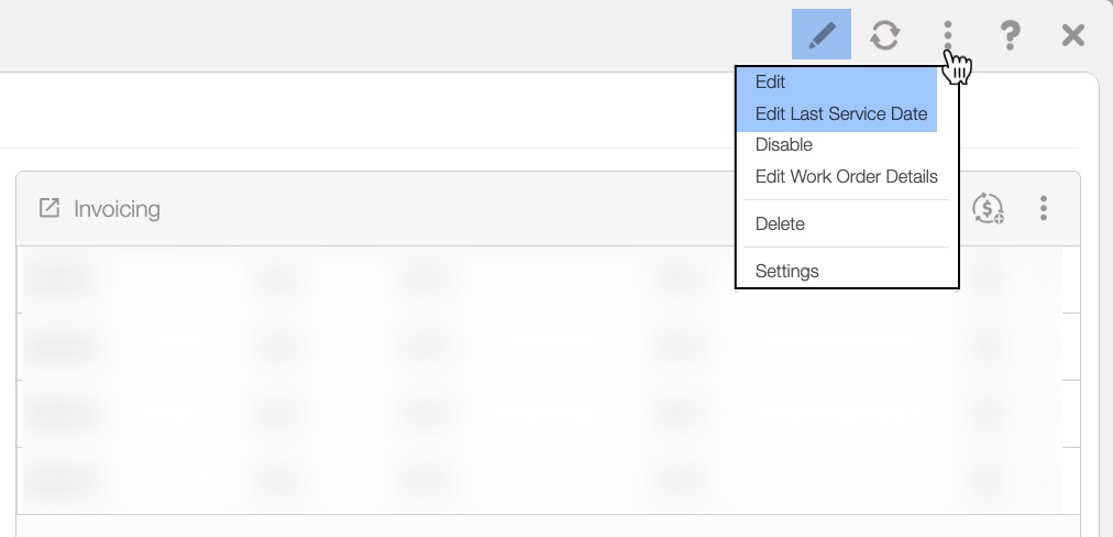 Click on the More Actions button and from the drop-down select the "Edit Last Service Date" option:
