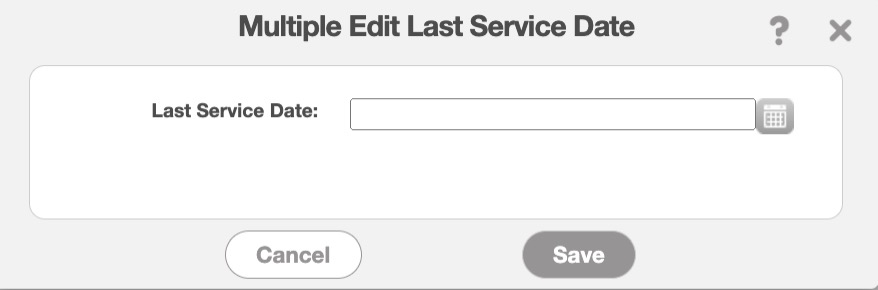 Once you click on the "Edit Last Service Date" option the Multiple Edit Last Service Date pop-up window will appear.