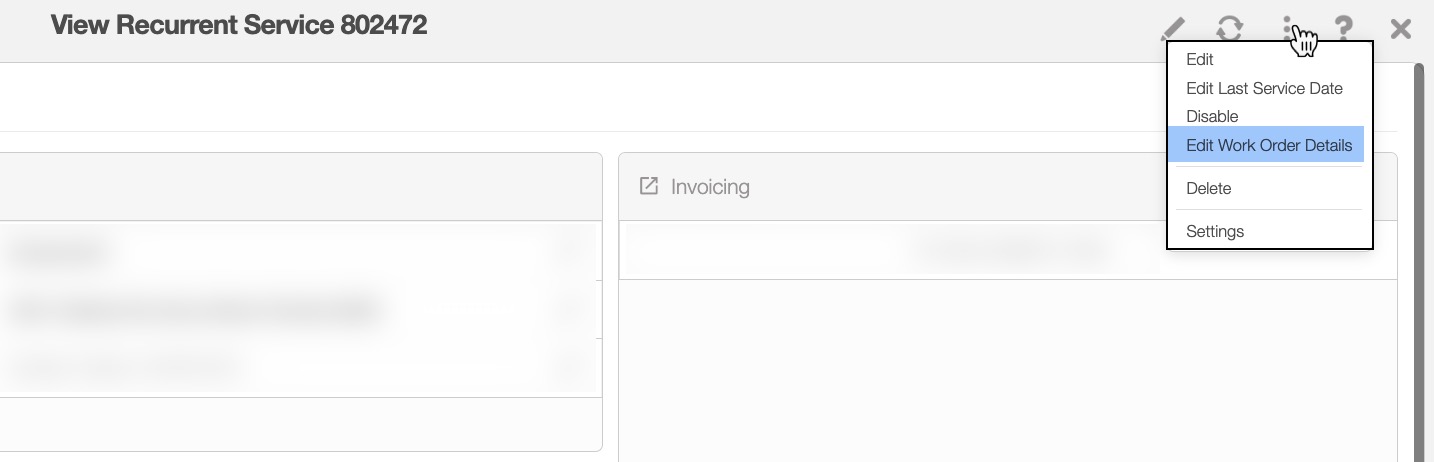 Instead of editing the entire recurrent service, you can update the details of the work order. This option allows you to fine-tune the work order details for the specified recurrent service without altering the overall service settings.