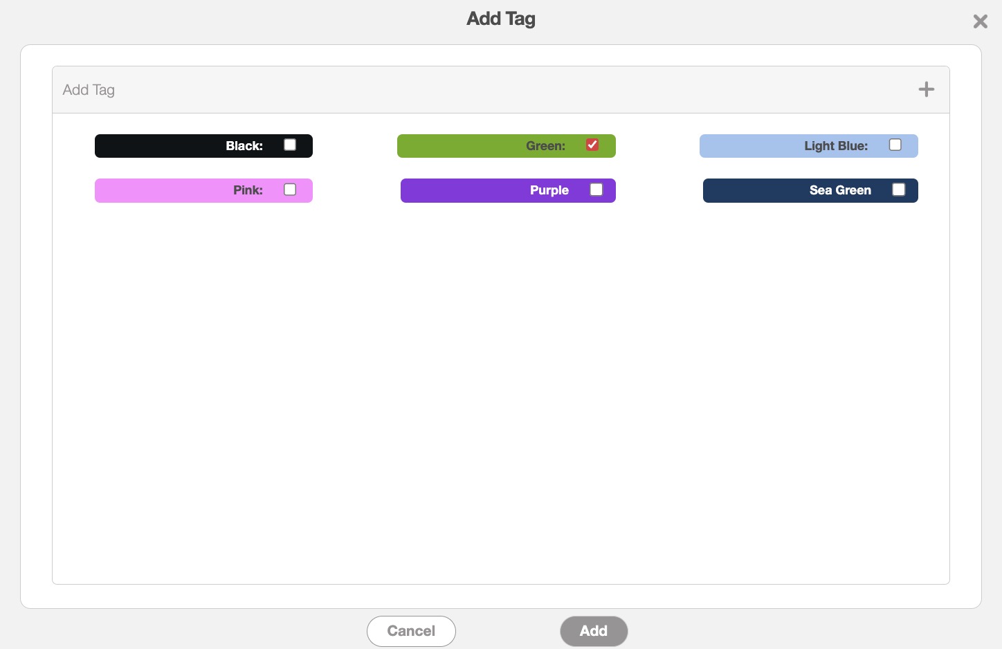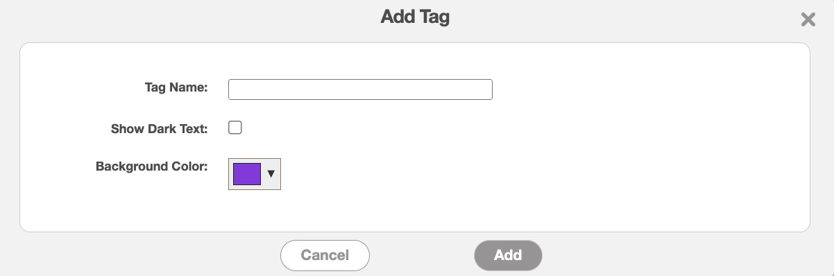 Once you click on the Plus Sign icon, the Add Tag pop-up window will then appear: