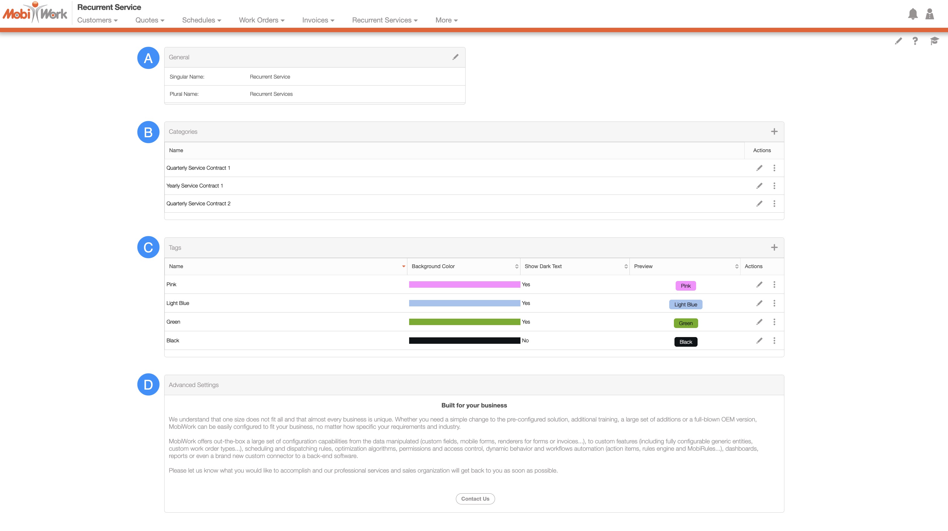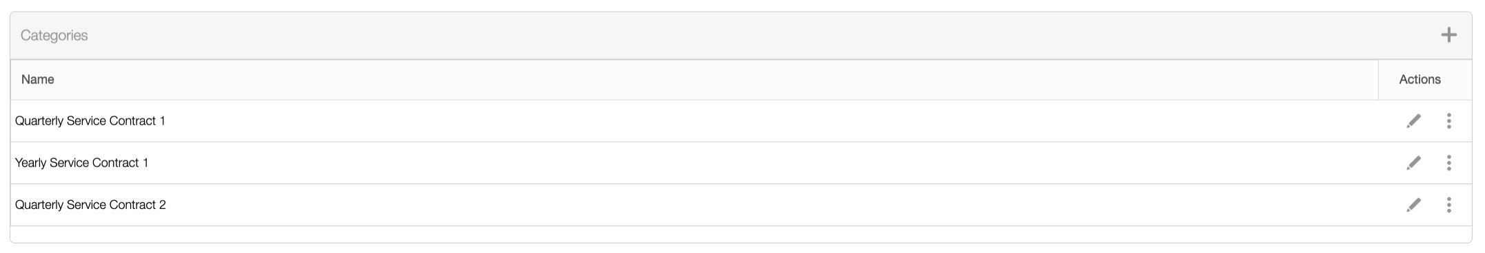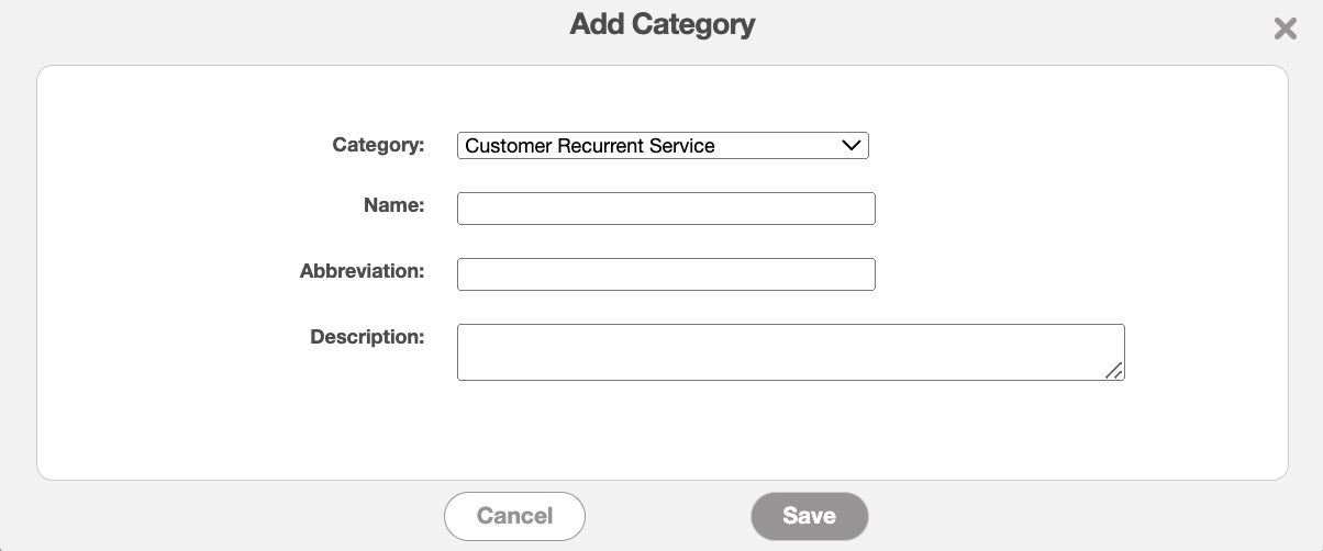 The "Categories" section will allow you to add a unique category identifier to better organize your recurrent services (e.g., Yearly Service Contract 1, Quarterly Service Contract 2, etc.).