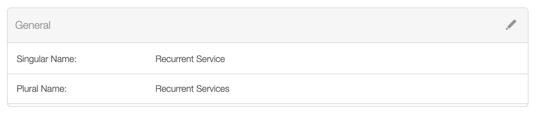 In the "General Settings" section, you can customize how you refer to your recurrent services. To modify this information, simply click on the Pencil icon located in the top right corner. This action will trigger the Edit Recurrent Services Settings pop-up window to appear: