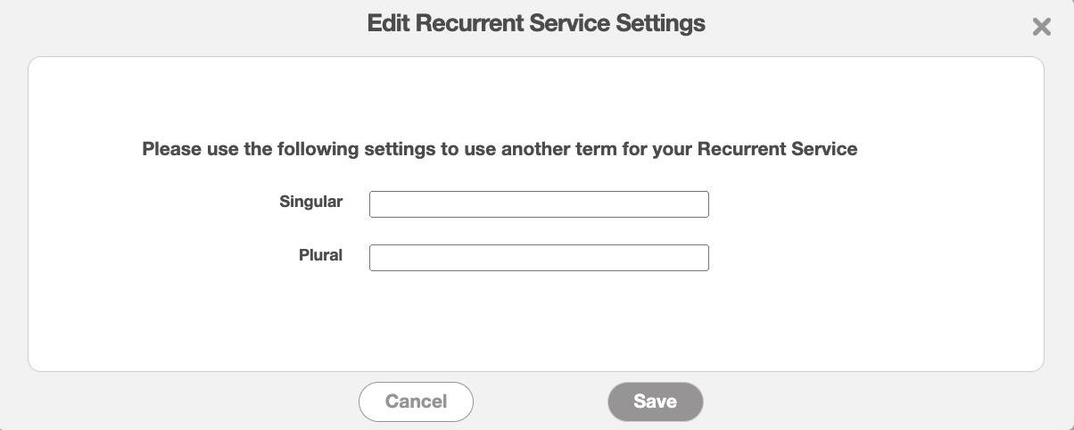 In this pop-up window, you will be able to update how you refer to your recurrent services to another term (e.g., singular: recurring appointment, plural: recurring appointments):