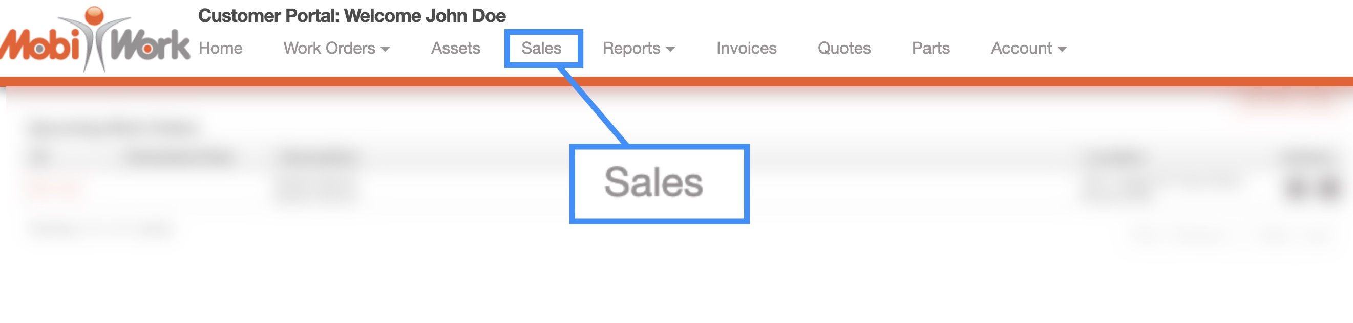 Your customer can access the Sales Orders page by clicking on the Sales feature from the customer portal menu: