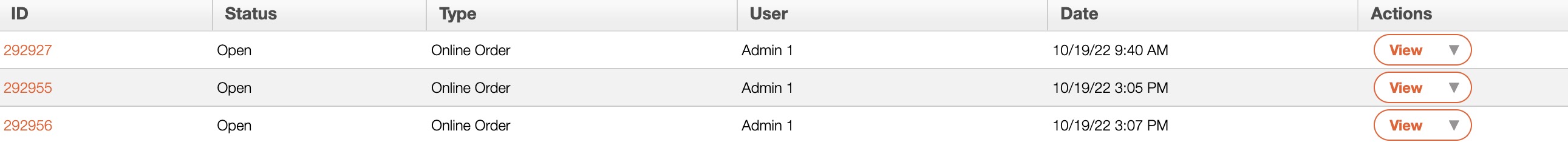 | "Actions" | Allows the customer to access the View Sales Order pop-up window, edit the sales order, or delete the sales order |