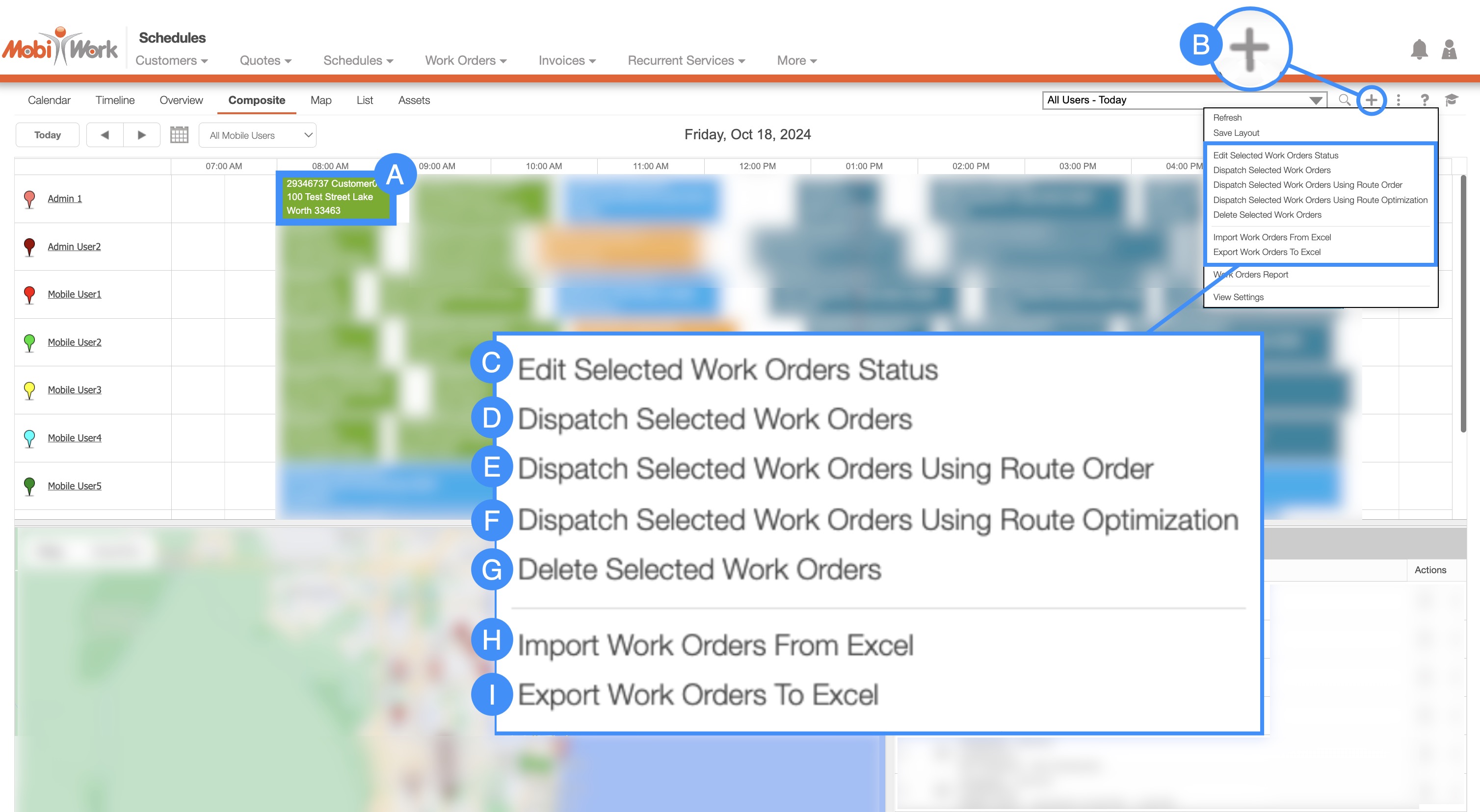 For more information on how to add a work order from the Schedule page please see the Add Work Order section.