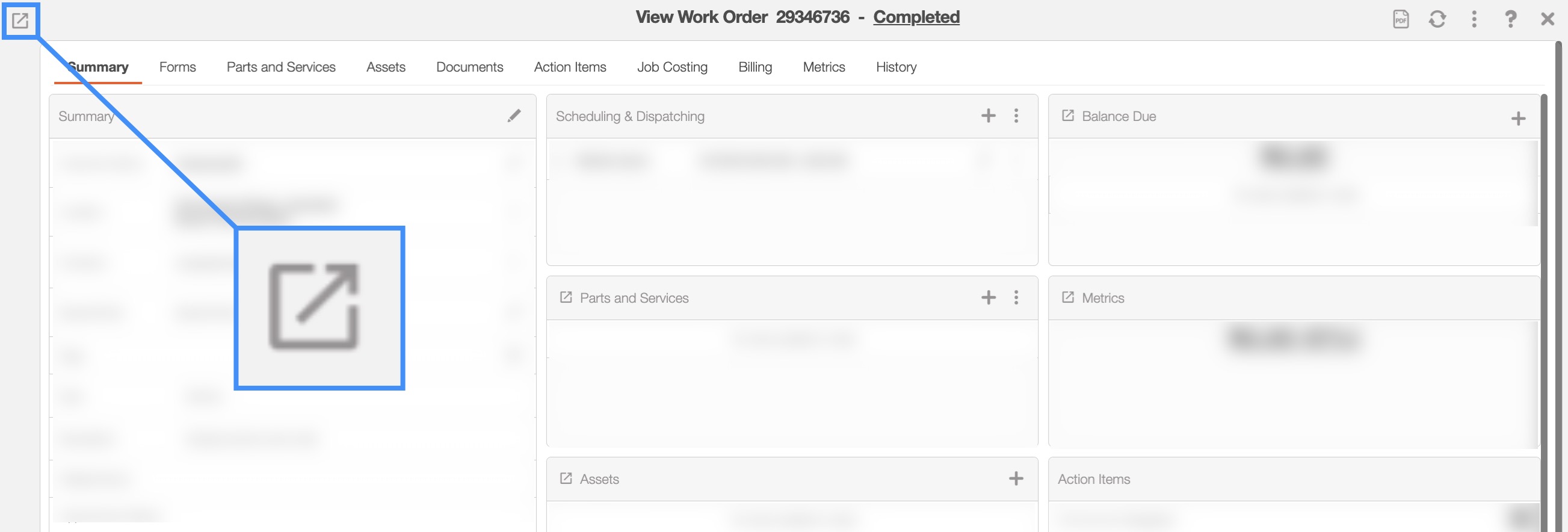 Please note that any work orders opened from the Schedule feature, will have the Minimize button, allowing you to minimize the selected work order so you can continue to work with the schedule: