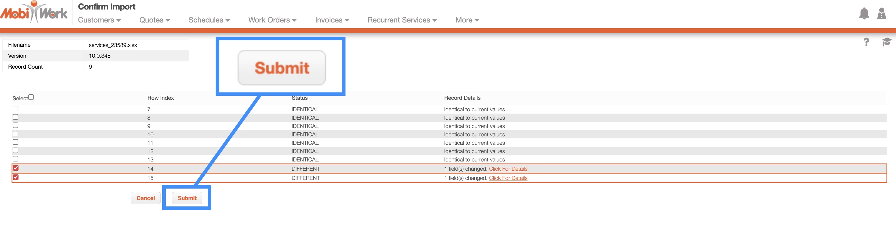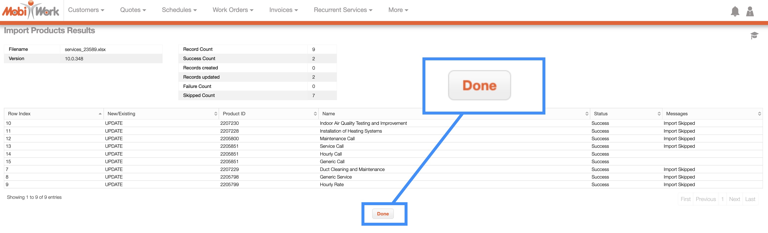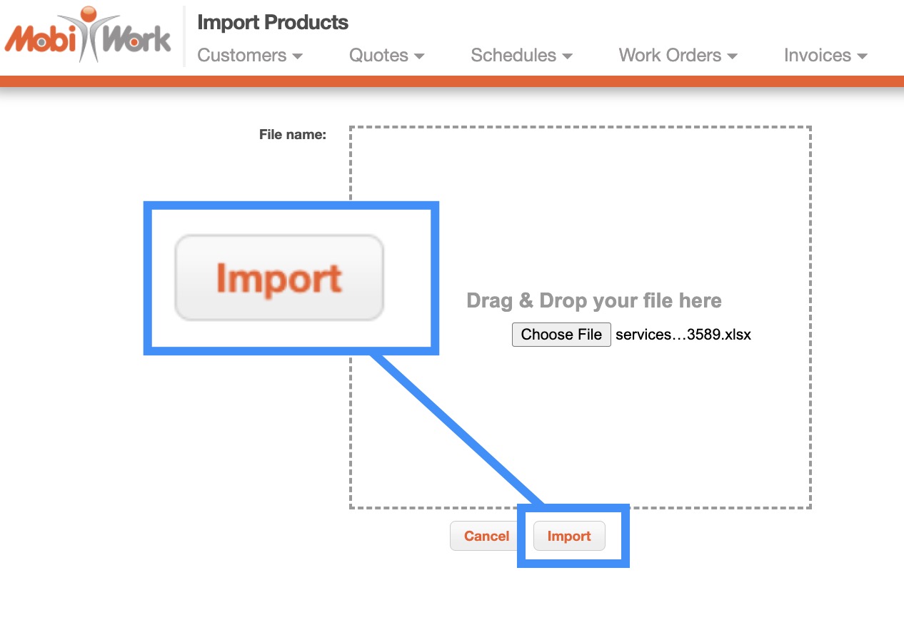 Once you have entered the services in the Excel document correctly, you can upload that document to MobiWork.
