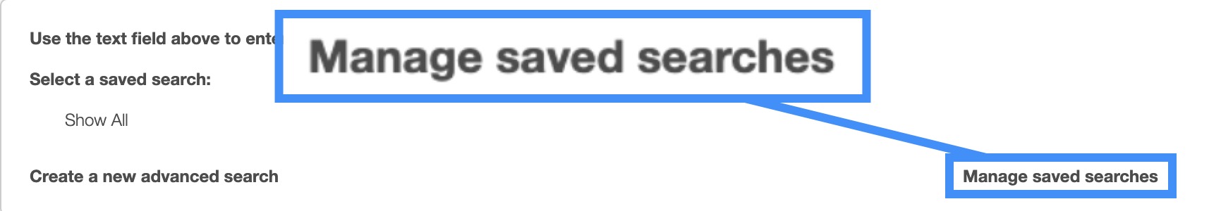 Any new searches that are added can be managed or edited in the Manage Saved Searches pop-up window: