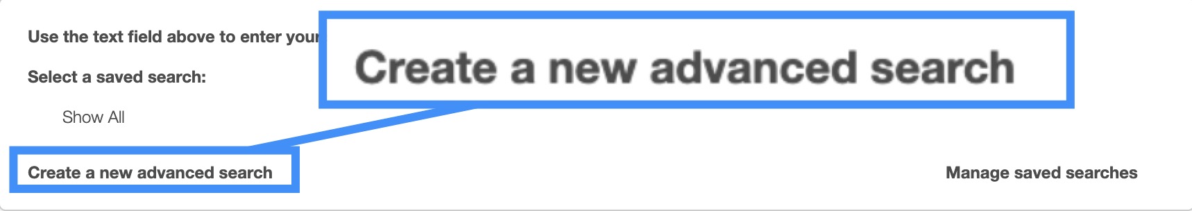 To create a new saved search, select the "Create a New Advanced Search" option from the search menu: