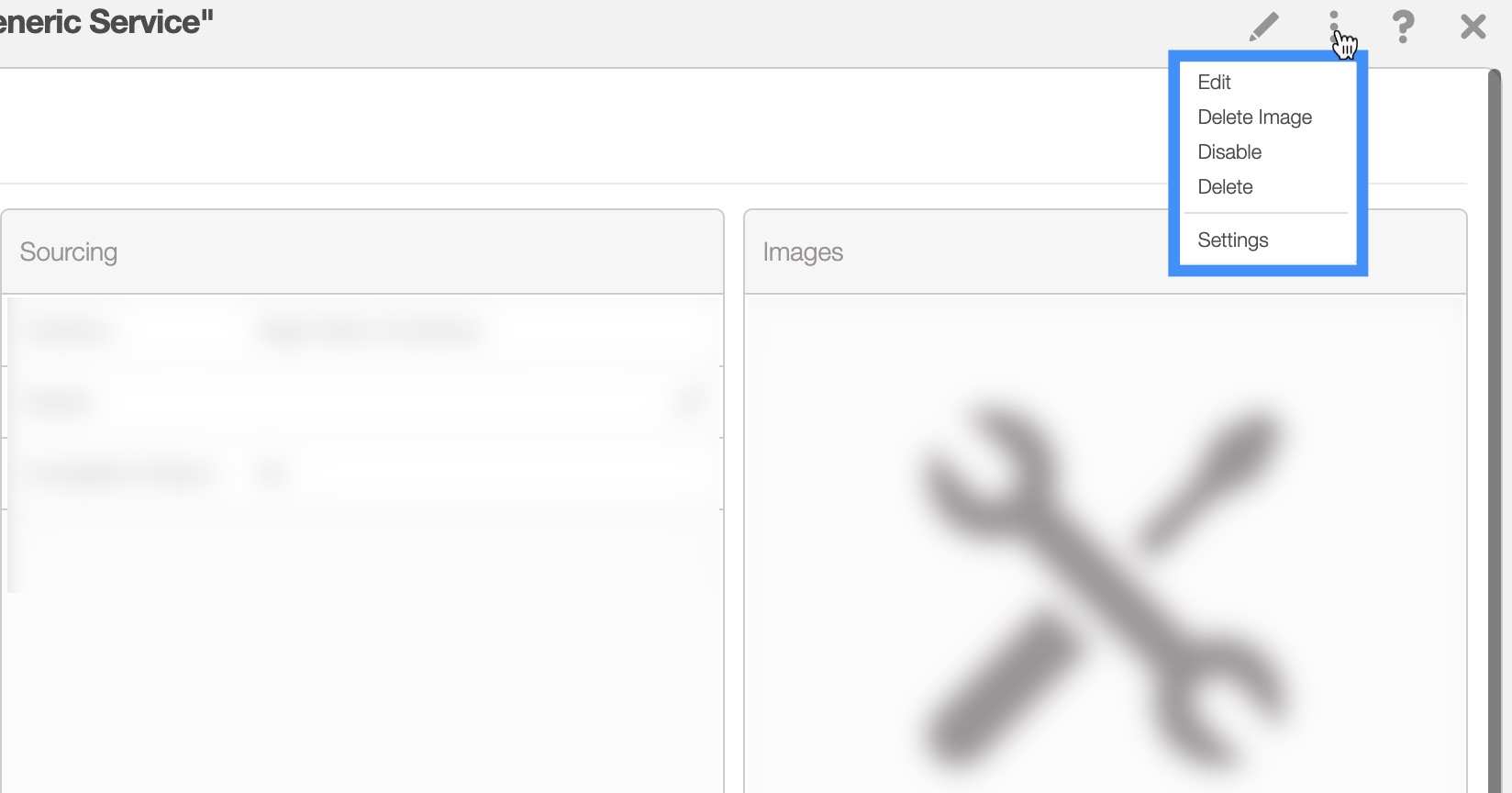 The "Images" panel will display the image associated with the service. You can update the image from the Edit Service pop-up window.