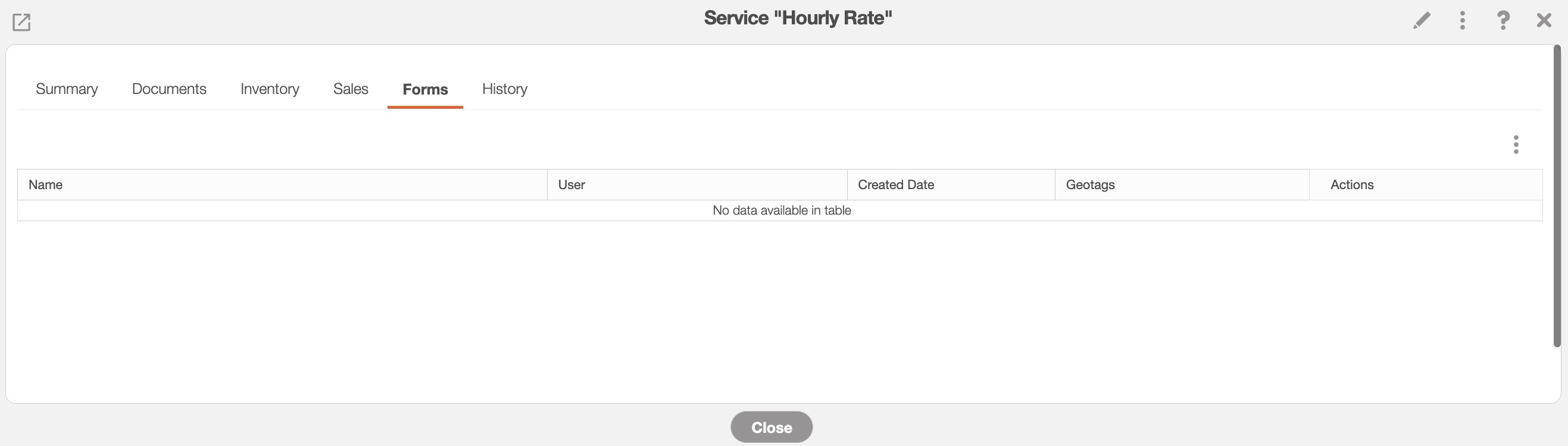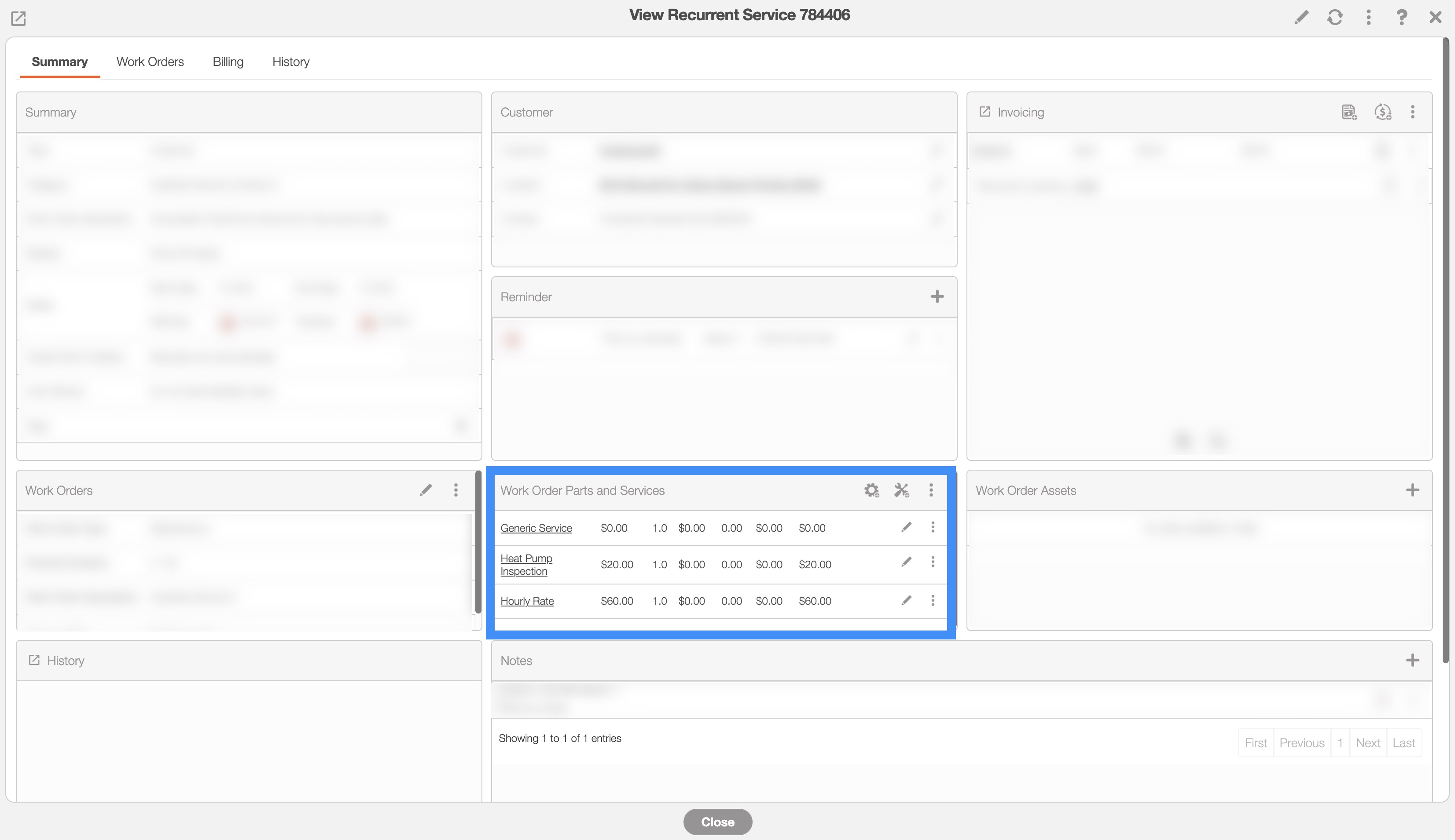 You can access the View Service pop-up window through the View Work Order pop-up window. For more information on how to access the View Work Order pop-up window please see the View Work Order page.