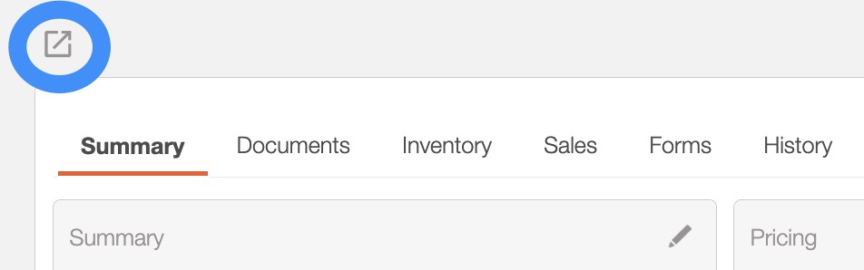 The Arrow icon (found in the top left of designated boxes) will open the corresponding tab in the View Service pop-up window.